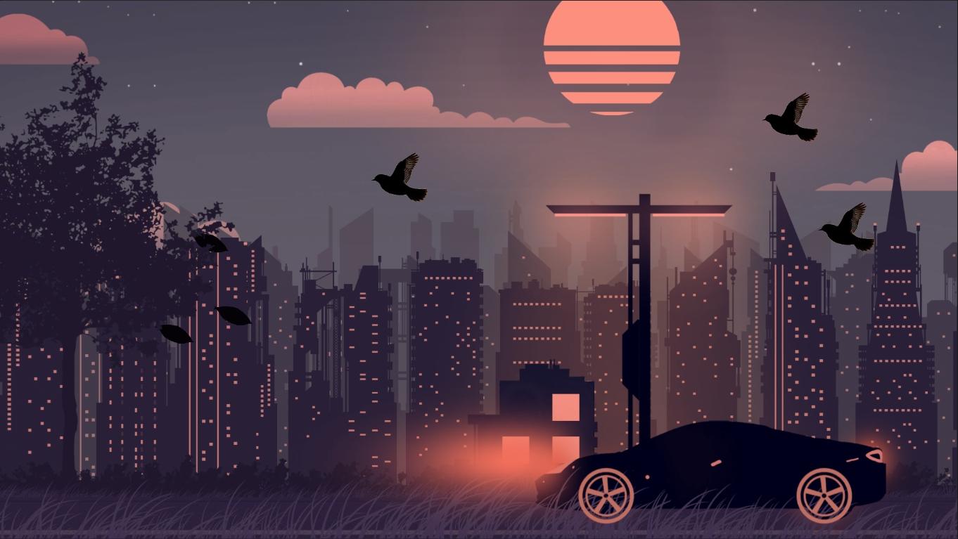 ,叶之旅从日落余晖中的城市街道到繁星点点的夜空